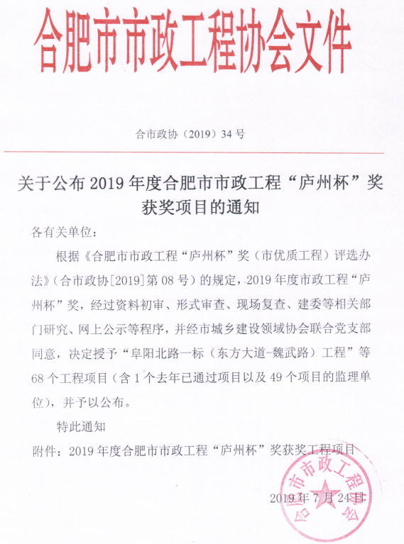 近日,公司承建的合肥清溪凈水廠PPP項目榮獲合肥市市政工程“廬州杯”獎(市優質工程)。合肥清溪凈水廠是安徽省首座全地埋式污水處理廠,設計規模為20萬噸/日,最大處理能力26萬噸/日,建成后與望塘污水處理廠共同承擔望塘污水系統的污水處理,服務范圍66平方千米。...
