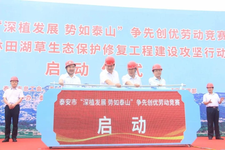 6月9日,泰安市“深植發(fā)展 勢(shì)如泰山”爭(zhēng)先創(chuàng)優(yōu)勞動(dòng)競(jìng)賽,在集團(tuán)公司中鐵泰城水生態(tài)環(huán)境治理項(xiàng)目施工現(xiàn)場(chǎng)舉行。