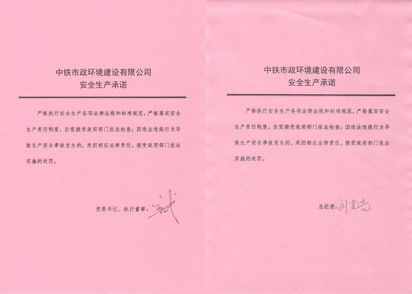 中鐵市政環(huán)境建設(shè)有限公司安全生產(chǎn)承諾