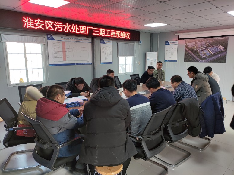 1月20日,淮安區質監站、淮安首創生態環境有限公司、中設設計集團股份有限公司及淮安市正中工程建設監理有限公司等單位共同對淮安區黑臭水體綜合整治PPP項目污水處理廠三期工程進行預驗收。