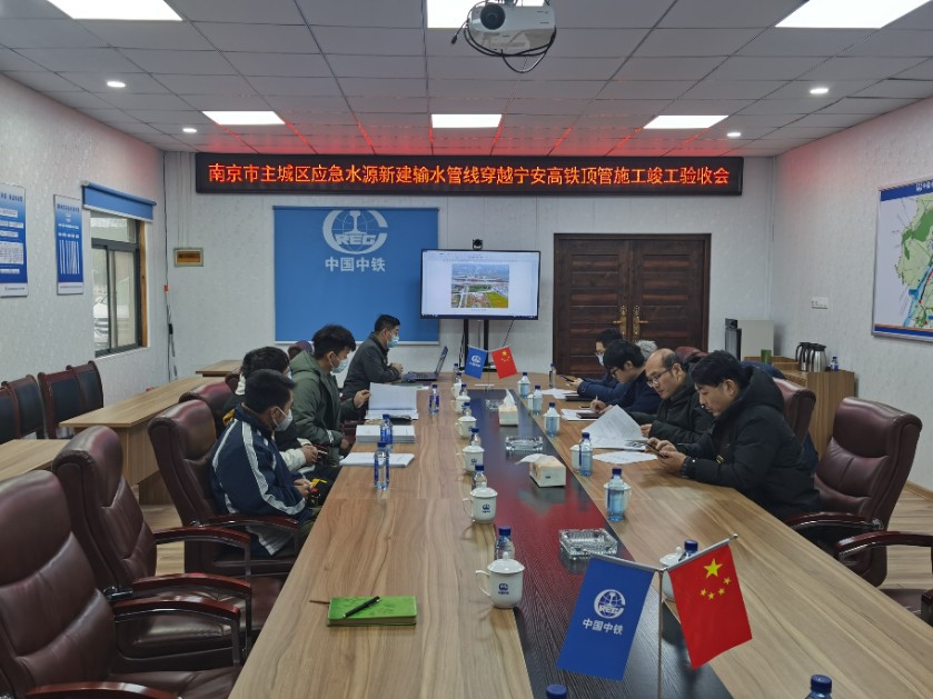 1月26日,南京市主城區應急水源新建輸水管線穿越寧安高鐵頂管施工竣工驗收會在項目部會議室召開。