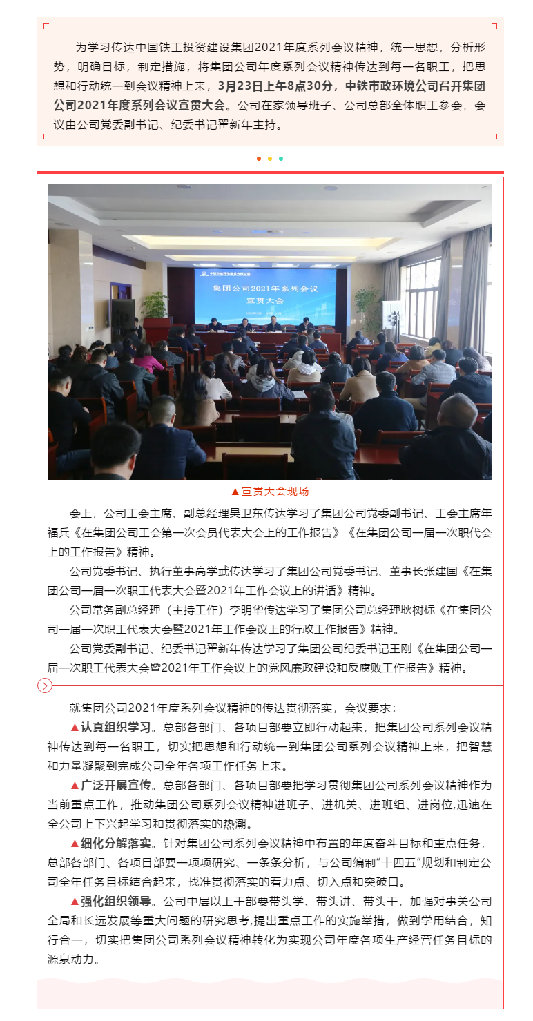 迅速行動!中鐵市政環境公司學習傳達集團公司2021年度系列會議精神