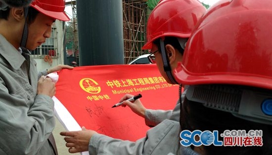 成都地鐵7號線二標正在緊張施工,作為該標段施工企業中鐵上海局21日啟動了“首屆廉潔文化宣全周”活動。現場,還進行了廉潔從業承諾簽名。